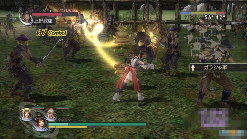 以高画质的战场为舞台,面对蜂拥而至的敌军士兵。玩家以3人编制的队伍出阵,针对不同情况,切换各个角色进行战斗。将战场上的无数敌人横扫一空,这种一骑当千的爽快感,在系列中堪称首屈一指。
