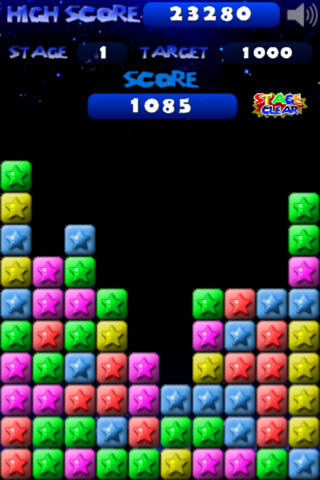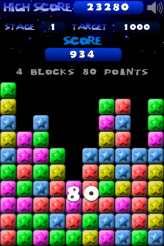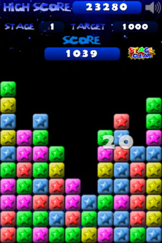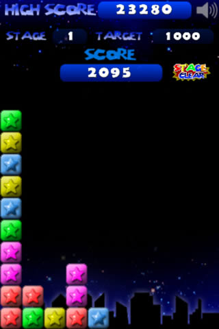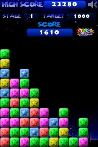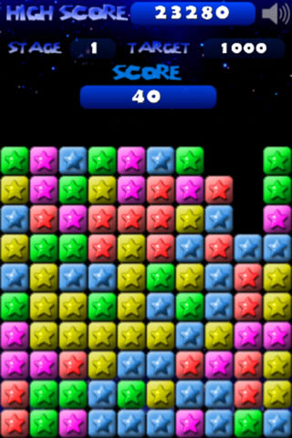 两个或两个以上的同色星星即可消除, 单指操控。