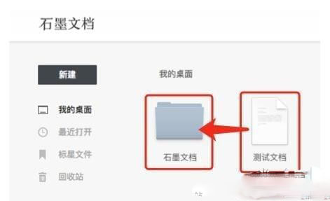 用鼠标将“测试文档”拖拽到“石墨文档”文件夹上即可,如图:
