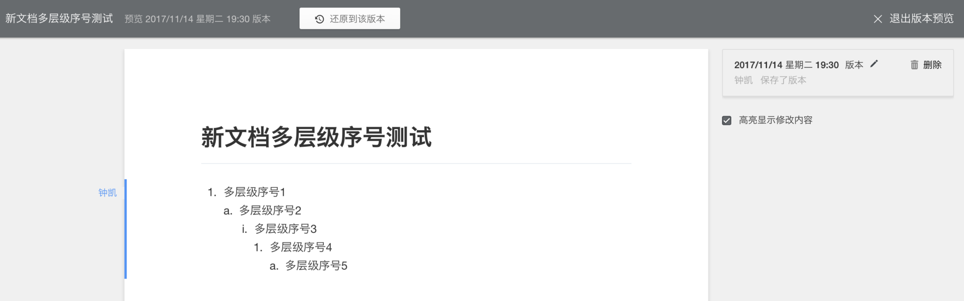还可以在文档历史中,进行预览版本、还原、删除,重命名历史版本等操作,如下图: