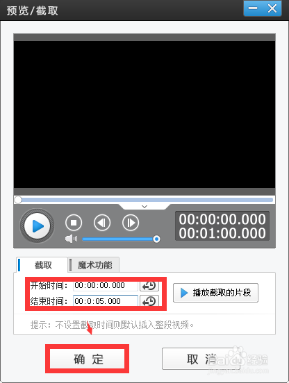 3、设置视频长度,默认为1分钟,沫沫在这里设置的是5秒,点击【确定】。