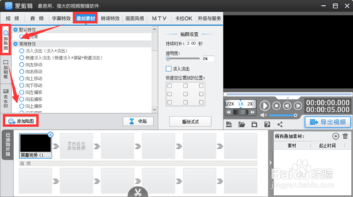 4、接下来依次选择【叠加素材】→【加贴图】→【添加贴图】,以贴图形式添加图片。