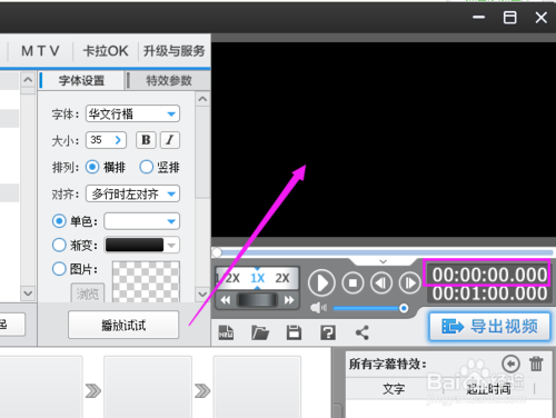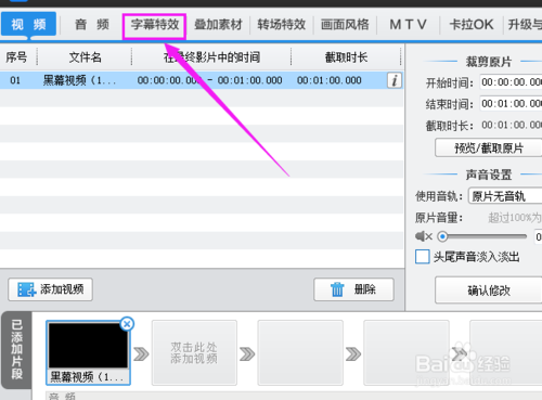4、比如我要在视频0秒的时候插入字幕。操作:双击屏幕上黑色的地方(因为插入的视频是黑底的)。