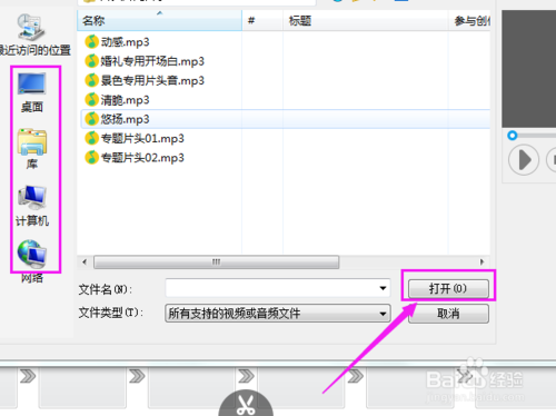 6、把自己对应的录音添加进来。找到那个录音,点击【打开】。