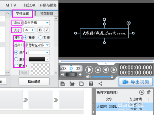 8、点击【字体设置】,可以设置字体、字体大小、颜色、排列等。