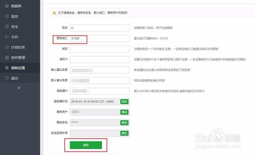 修改宝塔面板端口和ssh端口。点击编辑。填写端口点击保存