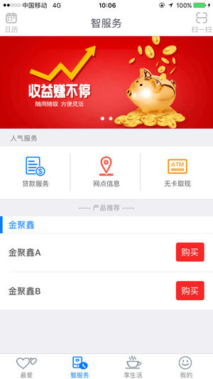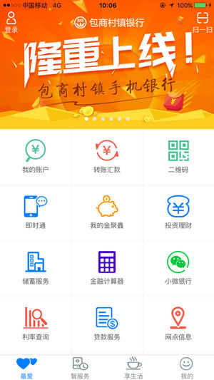包商村镇手机银行是专门为智能手机和移动金融端生产群制作的移动金融服务平台,主要覆盖我的、最爱、智服务、享生活等四大板块,为您提供贴心实用的金融服务、时尚动感的界面视觉、个性好用的功能布局、超人性化的用户体验,助您玩转金融与时尚。