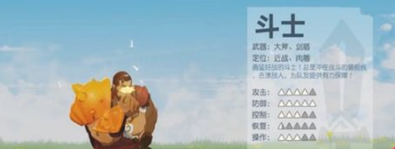 这个职业是一个肉盾英雄超高的防御里让这个英雄可以帮助自己的队友吃伤害,如果有一个舞姬配合回复的话,斗士将成为一个不死的存在。