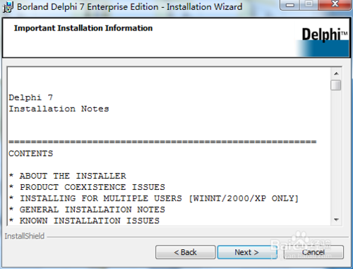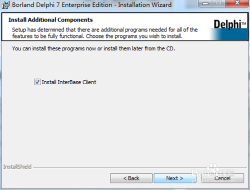 小提示:有时由于未曾安装过interbase数据库,在安装d7时也会要求安装,一路点击下一步即可