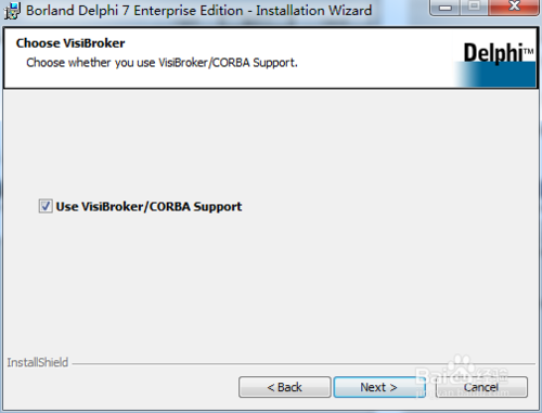 选择默认安装选项,并在第二图中对于“Use VisiBroker/CORBA support”选项的选择,可以选择忽略,因为现在已经很少使用到,也可以按照默认选项进行,单击“Next”按钮进入下一步。