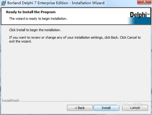 点击install,选择安装,安装过程中系统将自动进行程序各个部分的配置,配置完成后,便可以在开始菜单上找到,delphi的图标,双击,打开编程环境