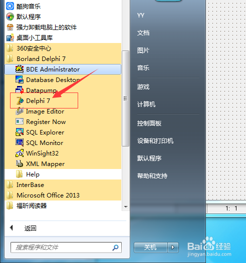 打开delphi7软件。