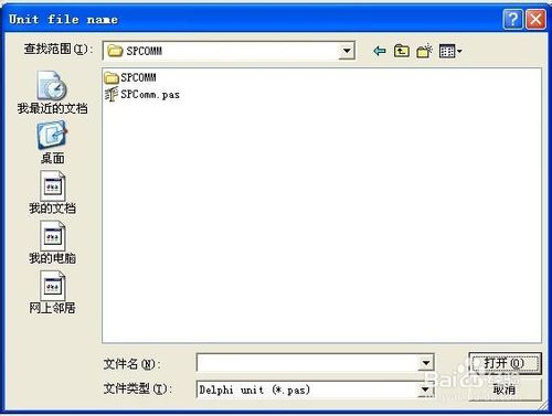 按下右上面的Browse...的按钮,显示下面窗口,我们按照前面提示的路径去找到串口控件SPCOMM并按下打开键,显示下面窗口。