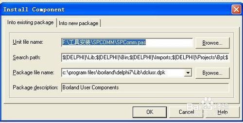 选择文件SPComm.pas并按下打开键,显示下面窗口,再按下OK键就完成串口控件的安装。
