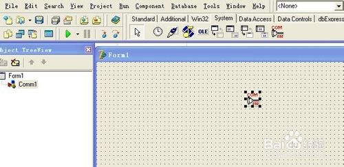 再到控件快捷条上找到System并按下,就可以看到刚加载的串口控件了,点击一下并放到窗口里面就可以使用了。