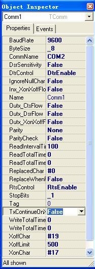 注意:Spcomm控件使用时13H,11H不能接收到,需要对控件进行设置,Inx_XonXoffFlow:=False; Outx_XonXoffFlow:=False; TxContinueOnXoff:=False;