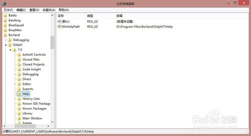 "WinHelpPath"=" D(某盘):\Program Files(某文件夹)\Borland\Delphi7\Help "