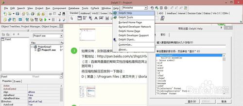 4、打开Delphi7按F1测试,或者直接在工具栏打开帮助文档。