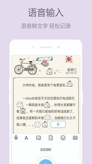 少女心日记是一款专门为少女的小秘密而设计的日记本生活记录软件。这款软件可以根据用户的需求来自主跟换皮肤,柔情的粉红少女风、可爱的卡通动漫风,只要你想的到的这里都有,甚至是DIY自己喜欢的皮肤也可以。少女心日记的对于保密也是非常注重的,用户可以设置双重密码。
