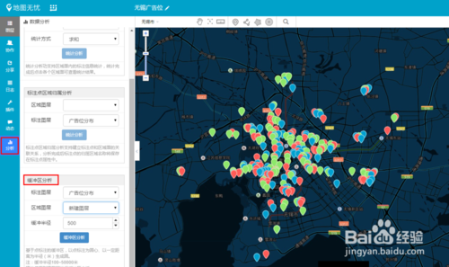 一、地图无忧的缓冲区分析功能使用教程在选址的时候,经常需要查看和分析距离标注一定范围内的地图内容,地图无忧提供了对标注图层生成缓冲区的功能,帮您批量生成指定距离的标注影响范围。具体操作步骤如下: