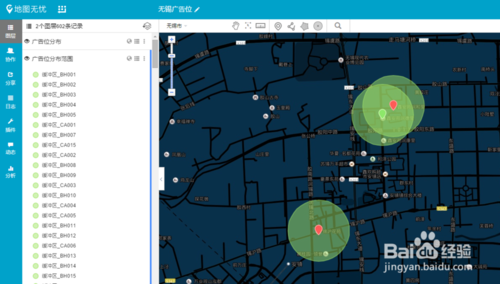 在选址的时候,经常需要查看和分析距离标注一定范围内的地图内容,地图无忧提供了对标注图层生成缓冲区的功能,帮您批量生成指定距离的标注影响范围。具体操作步骤如下: