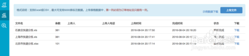 平台开始分拣订单,同时,以上传的文件名为标识,在页面上增加一条分拣记录,显示分拣的条数、上传人电话、开始及完成时间、分拣状态等信息,解析完成后,可以将结果下载下来查看,结果 excel 文件中,在地址信息后增加一列,标明地址所属站点。批量分拣用于集中处理一批订单。