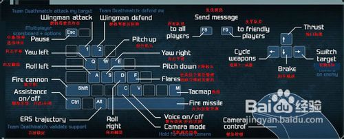 PC键位操作说明2:(说明2里的键位则是和说明1相反的,W是加速,S是减速,A是切换武器,D是切换目标,Q与E和说明1一样,都是水平移动,而上下左右方向键则依次是:机头朝上、朝下、左翻滚、右翻滚)说明1和2 的控制不一样,也是因人而异,凭个人喜好