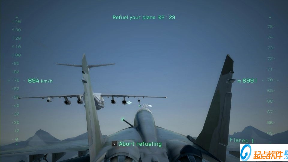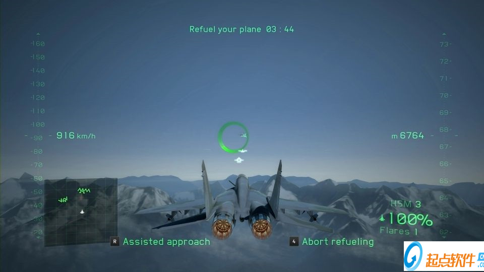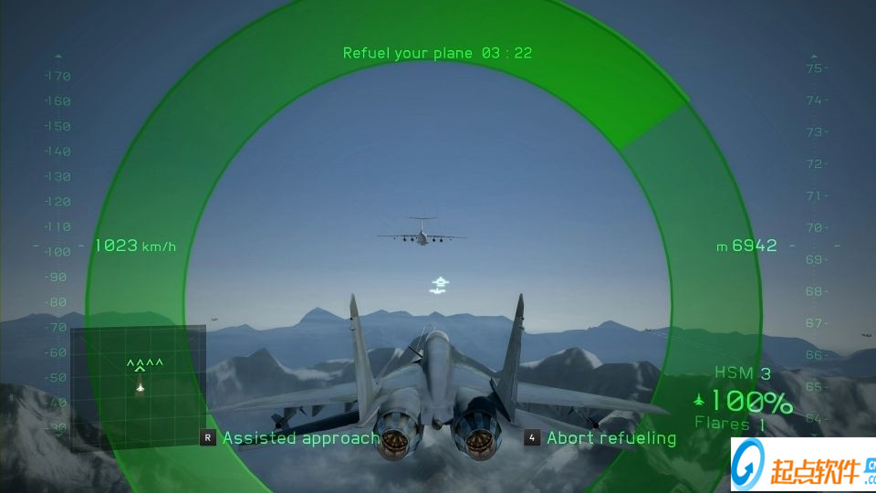 打下来之后就是空中加油的部分, 空中加油也和降落一样可以由系统辅助, 开不开就见仁见智了, 个人认为难度不低,还有时间限制.