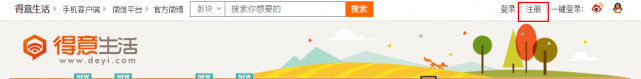如果没有上述账号,或者想注册一个新的得意生活用户名,可以打开得意生活首页http://www.deyi.com/,点击右上角的“注册”。注册完成后系统会给你填写的邮箱内发送一封确认信,收到确认信后,点击确认帐户链接地址即可完成注册。(特别说明:确认信中的有效链接需要在48小时内完成确认。超过48小时该确认链接失效。可重新登陆发送)