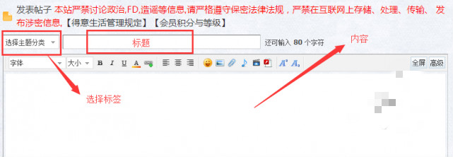 可以在电脑上登录得意生活用户名发布帖子,发表内容一个楼层最多是5000个汉字,发布成功的帖子一个列表页共有20个楼层。如何发帖: