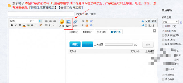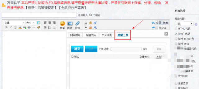 点击批量上传,此类上传图片将印有得意专属水印,谨防你的帖子被抄袭。