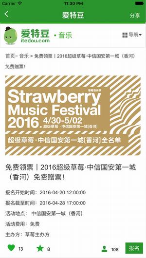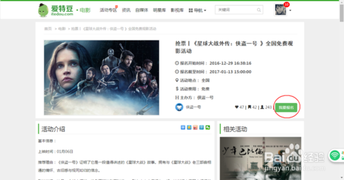 进入具体抢票活动页面,可以通过点击“报名”进行报名活动。
