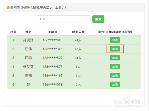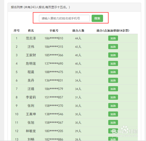 填写完报名表后,报名信息即可进入后台系统,在下方“搜索”里搜“手机号/邮箱/姓名”都可以找到自己,并且显示自己的助力情况。
