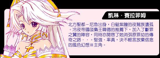 救世主加瑟多用远古时代邪神迪斯雅所使用的七枚原罪徽章封印了乱世的六大圣灵,同时亦结束了人类与妖精之间,长达近百年的战争……但毕竟是与代表着自然的妖精为敌,就算是人定胜天的坚持获得了最后胜利,那忤逆自然的罪所带来的罚,亦将不灭的存在。就在加瑟多因封印六圣灵而力尽逝去后,不再受制于救世主掌控的七大原罪徽章终于争脱咒语的束缚四散于天际……好争擅斗的人类世界第一次有了共识,为了因应这注定来到的七原罪之劫、为了抵御这必将成真的灭世灾难,就在北帝国与南方联合公国-圣焰的促成下,精灵战争的英雄-圣焰王辛格尔德正式在全人类世界的期盼中,成立了集合中土世界精英、专门为消弭七原罪之劫而存在的精英组织--“断罪之翼”,并扬言这集合了各国顶尖菁英、随时保持顶尖战力的集团将取代已远去的救世主加瑟多,代替人类世界斩断因果所带来的罪与罚,争取完美无暇的和平盛世!!大陆历189年,距离精灵战争的结束已过了92年的时光。在这近百年的岁月里,北帝国--“冷夜”的掘起、联合公国--“圣焰”中贵与贫的内战,皆在显示着人类世界的互动并未因注定到来的劫难而停止……当然,对“断罪之翼”这组织而言,不断训练培育着各国前来的新血也未有一刻止歇……就在这一年初秋,北帝国“冷夜”的圣都尼鲁,一名白发少女--凯琳通过了灾厄殿的考验,顺利成为圣都尼鲁进入“断罪之翼”组织的代表。同时,曾于圣焰内战中有着优异表现、甚至以20岁之龄即获得“修罗将军”称号的圣亚里昂公子--西撒·赤红亦也在圣焰王的推荐中进入“断罪之翼”的殿堂。究竟这两个人的相遇,会为“断罪之翼”带来什么样的改变??蛰伏于历史之影中的七原罪徽章又是否会如预期般的觉醒,并带来预言中的毁灭神罚??而当这一切已预言即将到来的劫难都已消弭,“断罪之翼”里来自于各国,经过了绝望与希望的洗炼而已经有着深厚感情的男女们,又将如何面对所属国家间,因共同目的的消失而逐渐对立争战的窘境!?风色幻想Ⅲ,将为您忠实呈现这壮大动人的大时代故事……
