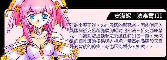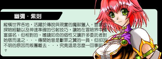 来自自由都市-香格里拉、经领主-克莱普强力推荐而进入断罪之翼的神秘流浪魔导师。魔法的天份远高于一般魔导士,基础的魔法对她而言根本就如呼吸一般容易。颂的地步。