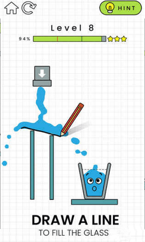 玻璃很难过,因为它是空的。你的工作是画一条线,让玻璃杯充满液体,然后再笑一笑!尝试找到完成每个级别的最佳方法。你可以提出自己的解决方案,所以要有创意,不要害怕开箱即用!