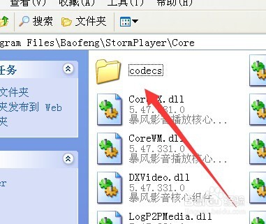 3、之后我们在暴风的目录中找到codes这个文件夹位置默认是C:\Program Files\Baofeng\StormPlayer\Core,不是默认的开始位置不一样,后面的是一样的