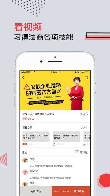 沃晟法商app丰富的法商课程体系、权威的法商明星讲师、创新的独家课程让你体验前所未有的法商在线教育的魅力!