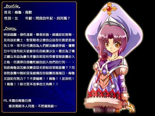 容姿端丽、个性温和、乐善好施、视钱财如无物,见利益如粪土,对冒险者公会的公益性任务更是身先士卒,常不计代价的为人们解决麻烦争端,弥赛亚中可说有如天使般存在的纯洁少女。为了导正总以利益为优先考量的邪恶利奇曼冒险旅团步入正轨,而选择自我牺牲地加入他们的行列……到底梅鲁该怎么改变这恶名昭著的冒险旅团?而面对旅团中犹如恶鬼般残忍的副团长——抠抠亚,梅鲁又该如何努力?不要输啊!梅鲁!加油吧!梅鲁!你才是本故事的主角啊!(PS:本篇由梅鲁自撰,修改需经本人同意,不然砸无赦!)