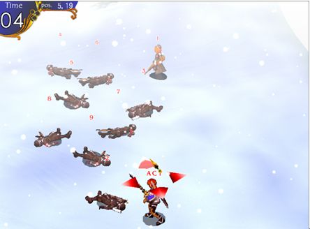轮到莉可和可丽儿,就分别到两边打小怪,SL出两边至少各一只混乱,让它们残杀吧。希亚跳到暴牙正背后处,给他两下……加上艾因之前的游击,基本接近半血了……