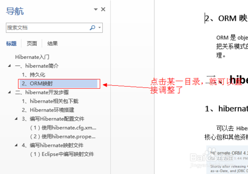 Office Word 2010 增强了 Navigation Pane 特性,用户可在 Navigation Pane 中快速切换至任何一章节的开头(根据标题样式判断),同时也可在输入框中进行即时搜索,包含关键词的章节标题会高亮显示。例如