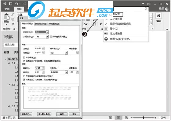 打开Word 2016,在界面右上方,可以看到一个搜索框,在搜索框中输入想要搜索的内容,搜索框会给出相关命令,这些都是标准的Office命令,直接单击即可执行该命令。对于使用Office不熟练的用户来说,将会方便很多。例如搜索“段落”可以看出Office给出的段落相关命令,如果要进行段落设置则单击“段落设置”选项,这时会弹出“段落”对话框,可以对段落进行设置,非常方便,如图1所示。