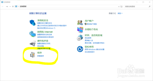 确保查看方式为类别,其实不一定非要这样,到后面你就会明白的;打开》》》程序选项