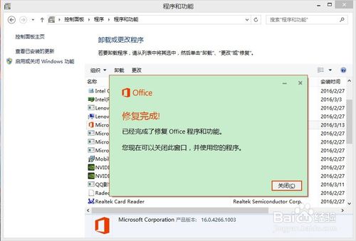 在联机修复完毕之后,建议大家还是验证一下看看是否还存在该问题,如果还存在该问题但是微软又没有提供相应解决方案的话,我们可以等待微软的更新,因为毕竟Office2016软件刚刚发布,还需要后续的不断完善才可以解决一系列问题。