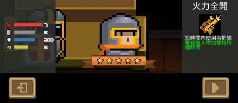硬派 Roguelike如同 Roguelike 的定义,《元气骑士》有着随机的迷宫,丰富的机关陷阱,大量的(以及大脑洞的)武器,死后装备全部重置的设定。游戏中有不同职业的角色,每个职业有各自的特色技能;进入前往下一层的传送们,还有可能获得新的 buff;迷宫中的地牢与商店能提供辅助与补给。所有元素让游戏有着无穷无尽的变化。