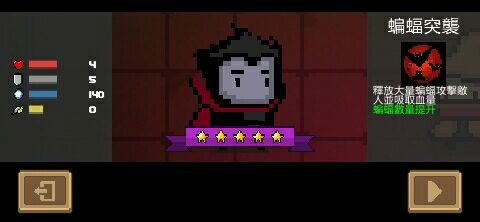技能:蝙蝠突袭:释放大量蝙蝠攻击敌人并吸取生命值(注:血量满时蝙蝠吸取能量)。