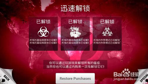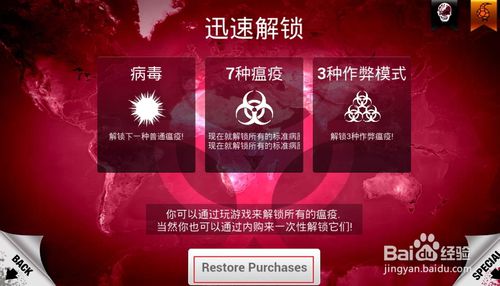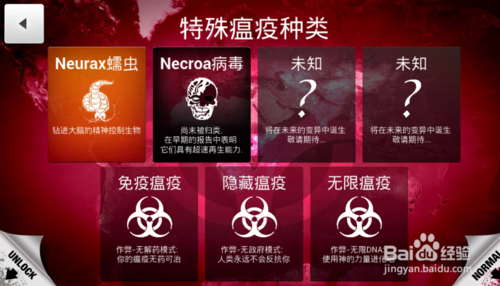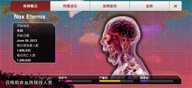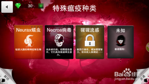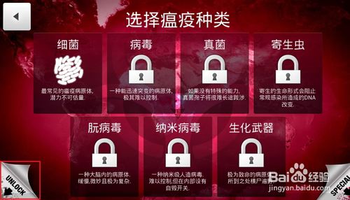 首先先来介绍一下游戏内容,主要是操作病毒感染并杀死所有人,并且在你通过上一种病原体的普通或困难模式以后可以解锁下一种并原体,也可以通过砖石来解锁关卡。