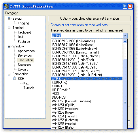 至于是使用 UTF-8呢,还是用 GB2312、GBK 或者 GB18030呢?我个人还是倾向于 UTF-8。毕竟我们使用的大多数软件都是国外的,处理中文编码多多少少有些问题,PuTTY 自然也不例外。