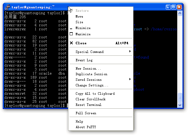 PuTTY 的默认字体和字符集并不适合中文显示, 在窗口标题上点击右键,选择 Change Settings...