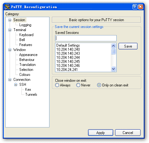 在前面说道保存会话时,大家或许也注意到,下面有个 Close window on exit 有三个选项: